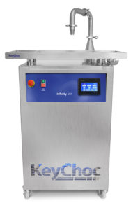 The KeyChoc INFINITY range of chocolate tempering machines consists of the AX (60 kgs) and BX (24 kgs), which are both fully automatic, continuous temperers as well as the MX (75 kgs) which is a seed temperer and the BT150 (150 kgs), which is a fully automatic batch tempering tank. The BT150 is designed to be connected to a cold water supply and to act as a feeder tank for tempered chocolate to moulding or enrobing lines.